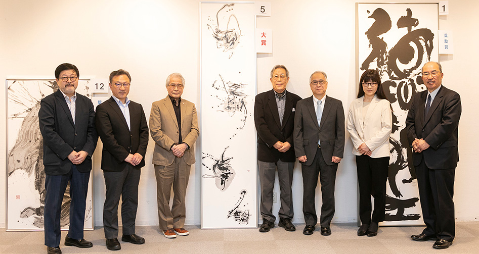現代のメディア社会を見渡すと、かつてよりも非常に多くの筆文字表現が拡がって認められます。ただし、その世界観や思想は、伝統的な書の本来像とは質の異なるものです。筆と墨と紙を用いて人の手から生まれ出る書表現の味わいや表情の豊かさと一線を画す前衛性は、時代の移ろいを端的に示しているものの、その浸透していく様子には、意外と気づかないものなのでしょう。この狭間に「前衛書」の存在があるならば、新たな書の創造にも未来があるのだと信じます。今回は、書の抽象性を工夫した作品が大賞に選ばれました。言葉ではない、漢字造形の多様さを土台として、そこに人の運きの印象が融合された華麗な作品でした。